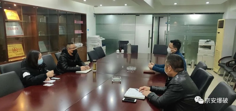 拱墅区财政局工作组实地了解了公司防疫和复工复产情况,在听取公司领导汇报后,现场作了政策解答,并对公司所采取的防控措施表示赞赏。工作组认为,京安爆破公司作为国有企业,在疫情防控期间,切实履行了国有企业主体责任,并在企业停产期如数发放职工薪资,充分展现了负责任的企业形象,针对疫情期间给公司所造成的困难和问题,作为财政对口管理部门,工作组成员详细解读了疫情期间中央、省、市、区有关财政帮扶优惠政策,助力公司渡过疫情难关,同时表示愿意在外籍员工返工包车、防疫物资筹备等方面提供相应帮助。